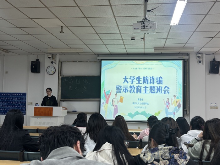多方协同,构建反诈“共同体”。此次全员班会依托警校联动机制,整合多方资源。校保卫处、学生处联合属地公安持续开展反诈预警和典型案例宣教,营造反诈教育氛围;学院、辅导员结合学生年级、专业特点定制班会内容,确保教育精准性。活动还通过班级群等平台推送预警信息,形成线上线下立体化宣传矩阵。