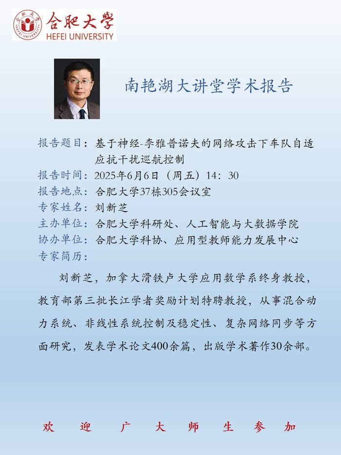 【南艳湖大讲堂】基于神经-李雅普诺夫的网络攻击下车队自适应抗干扰巡航控制