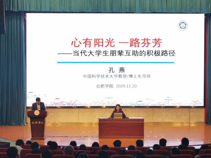 11月10日,由校党委学生工作部、学生处主办的大学生心理健康教育报告会在学术报告厅A厅举行。报告会邀请了中国科学技术大学二级教授、博士生导师、中科大心理教育中心首任主任孔燕教授为我校全体班级心理委员上了精彩的一课。会议由校党委委员、学生处处长朱涛主持。