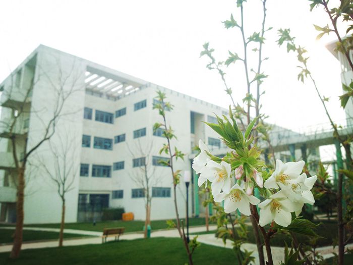 走入一区校园,银杏枝头的雀儿便欢歌相迎。恐人不知春消息,一曲迎春与君听。两旁高枝任它们追逐相嬉,一跳一跃间便谱出乐章无限。令人一见就恨不得身添双翼,也化作一只鸟儿,飞上枝头去看那初生的新芽,为它歌一首生的赞歌!由杏树指路,鸟雀相引,让人在满目风光中忘了脚下已走过了几步路。绕过行知楼,映入眼中的,是一湖春水平如鉴,九曲小桥蜿如龙。你看那三三两两结伴同游的学生们,轻移莲步,怕惊了碧水;慢吐鼻息,恐散却游鱼。柳絮纷纷,点在湖边青苔;亭阁隐隐,映入水中绿树。几位留学生也趁着煦日暖阳,在这颇具中国古风的小亭中谈笑风生。石桥分水色,照影团圆中。水色随春变,入画意无穷。艺术楼的琴音与歌声随风飘来,舞动了垂柳,陶醉了樱花,唤醒了羽衣甘蓝。谁不爱这春动校园,一片盎然?