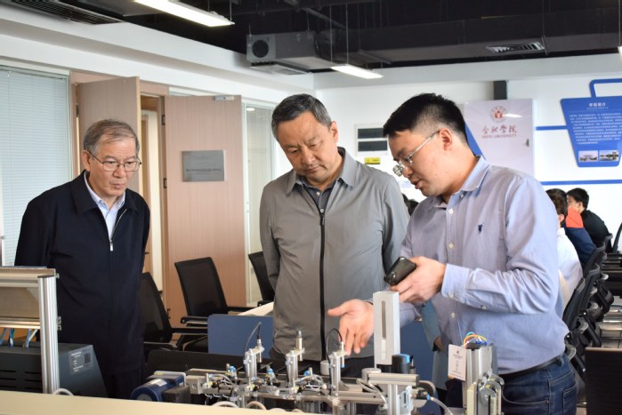 吴俊清一行还来到了中德教育合作示范基地,实地考察了大众学院,听取了相关负责人关于大众学院基本情况、人才培养机制、国际交流合作和产学研合作、建设成效等情况的汇报,参观了智能制造产教融合实践中心、数字孪生技术及应用工程中心等实验室,深入了解学生科研学习及产教融合项目开展情况。吴俊清指出,大众学院要充分发挥自身优势,在应用型人才培养方面做出更多的探索,进一步提高应用型人才培养质量。