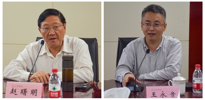 7月10日下午,由科研处、经济与管理学院主办的题为“如何管理自己”“服务机器人应用偏好研究”的学术报告在行政楼九楼东会议室举行。南京大学人文社会科学资深教授、南京大学商学院名誉院长赵曙明教授与浙江工商大学校长、党委副书记王永贵教授应邀作学术报告,安徽大学商学院院长周泽将应邀参会。经管学院青年教师及部分研究生共40余人参会。报告会由院长吴春梅主持。