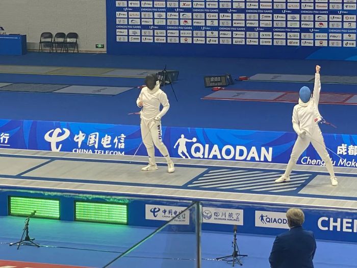 8月5日,成都大运会进入女子重剑团体赛争夺。来自合肥学院的安徽姑娘唐君瑶和队友许诺、施悦馨、李珊珊组成的中国队面对意大利队,以总比分34:28战胜意大利队夺得金牌。这也是我校第一个世界大学生运动会冠军!为安徽夺得第四金!