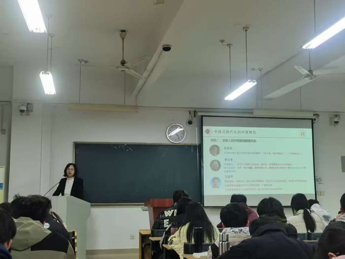 吴春梅结合党史、国史、校史和校情,聚焦新时代新征程中国共产党的使命任务,重点阐释了中国式现代化的中国特色、本质要求、战略安排和重大原则。吴春梅表示,独特的文化传统、独特的历史命运、独特的基本国情,注定了我们必然要走适合自己特点的发展道路。百年来,中国共产党带领人民探索了中国式现代化道路。中国式现代化立足中国国情,结合中国实际。尤其是新时代十年的伟大变革,不仅在党史、新中国史、改革开放史、社会主义发展史,而且在中华民族发展史上都具有里程碑意义。这充分表明,中国式现代化发展道路是符合我国国情、具有强大生命力的发展之路。