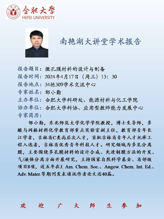 【南艳湖大讲堂】微孔膜材料的设计与制备